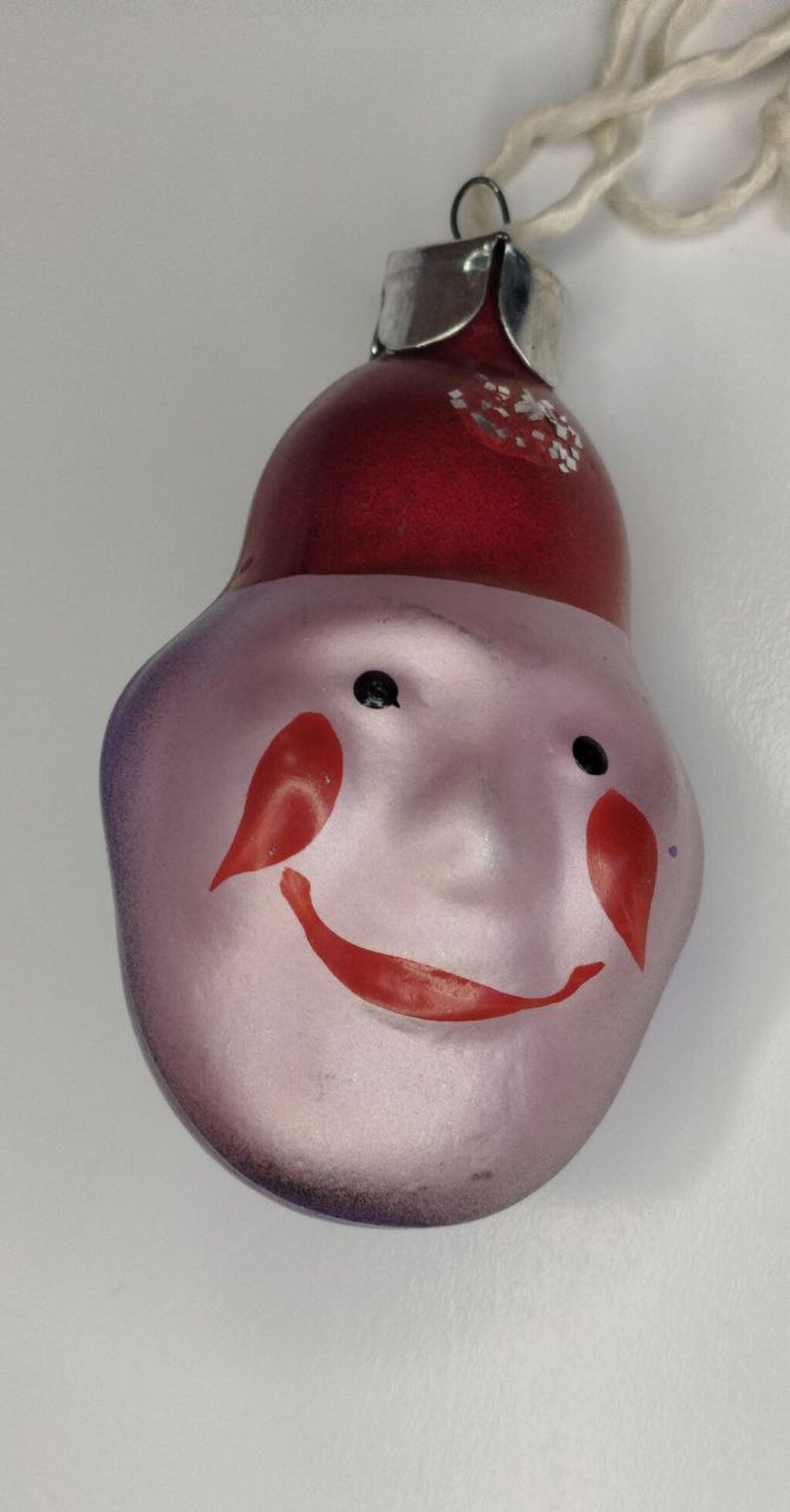 Небольшая партия елочных игрушек ручной работы в виде клоуна появилась после выхода фильма «Цирк» (1936 год, режиссер Григорий Александров). Клоун выполнен из тонкого стекла, расписан вручную яркими, характерными для того времени красками. Его образ – это воплощение праздника и беззаботности, столь любимых в СССР.