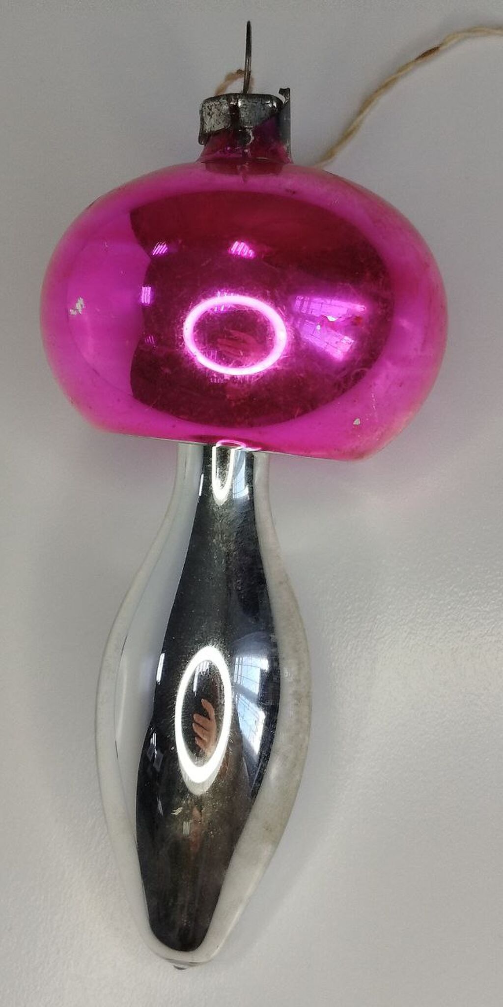 Эта елочная игрушка в форме гриба – не просто украшение, а настоящий символ советского Нового года. В те времена грибы были одними из самых популярных мотивов для елочных игрушек, олицетворяя богатство природы, лесные сказки и уют. Изготовленная из тонкого стекла, она вручную расписывалась яркими красками, часто с добавлением серебристых или золотистых блесток, имитирующих иней. Каждый такой грибок уникален и несет в себе дух ушедшей эпохи, напоминая о беззаботном детстве и волшебстве зимних праздников.