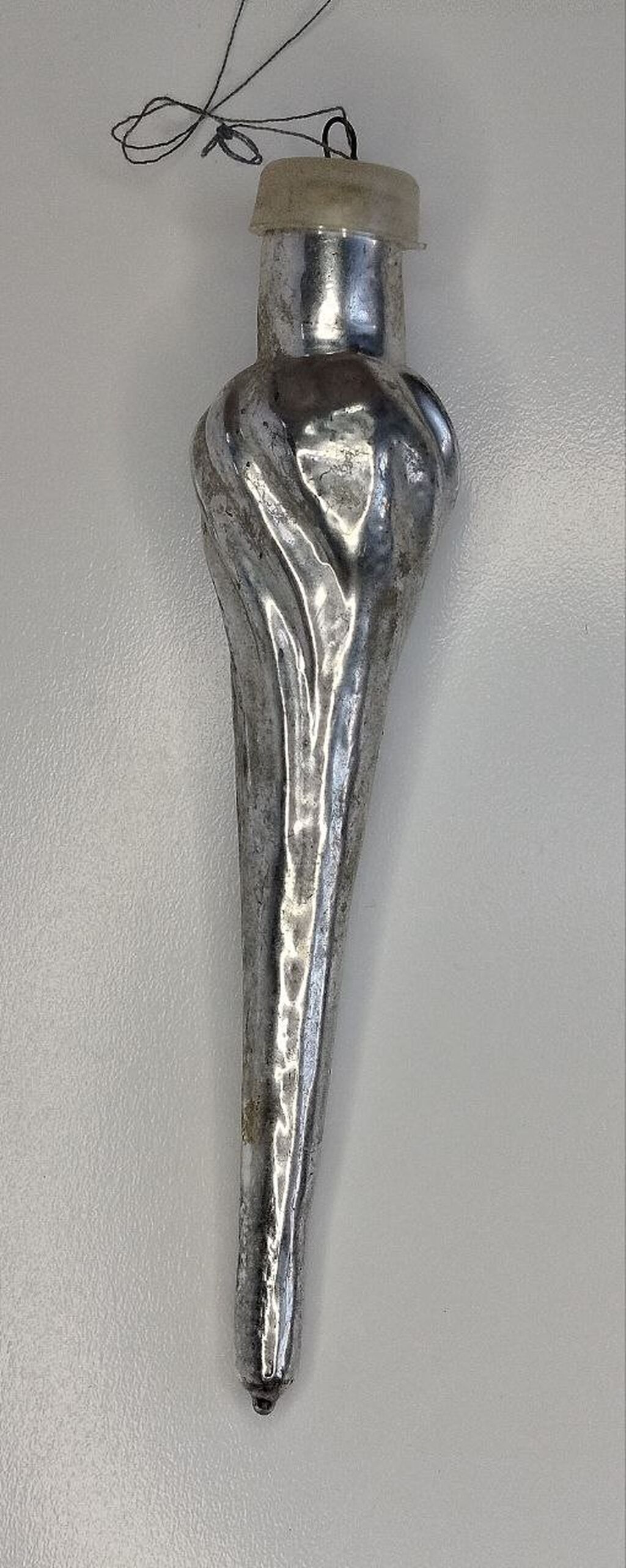 Елочная игрушка «Сосулька резная» серебристого цвета – элегантный символ новогодних праздников СССР, созданный в 1950-х годах. Изящные линии и блеск её поверхности придавали елке волшебство и уют.