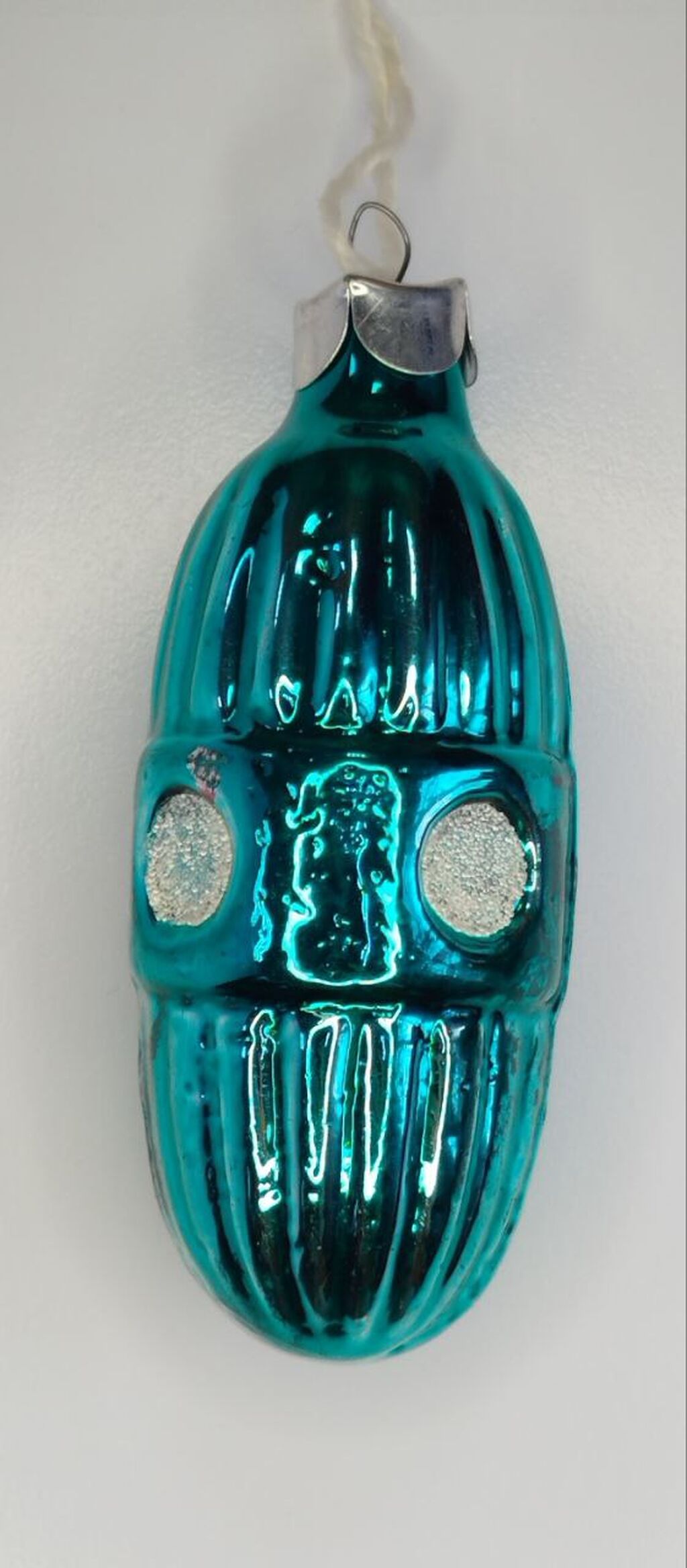 Ёлочная игрушка «Огурец» – это украшение, ставшее популярным в 1950-1970-е годы, символизирующее развитие сельского хозяйства во времена «Оттепели». Она обладает простой формой огурца, выполненного в зелёном цвете с изящной прорисовкой прожилок. Массовое производство этого изделия связано с эпохой «Оттепели» (1960-е), когда тематика сельского хозяйства стала актуальной, сменяя идеологические сюжеты. Однако подобные игрушки изготавливались и в 1950-е и продолжали выпускаться до 1990-х годов. Огурец как элемент овощной тематики на ёлке отражал увлечение овощеводством, а также стремление к изобилию и «колхозному» быту, характерным для того времени, в противовес агитационным игрушкам.