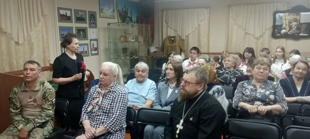 На встрече присутствовали представители органов власти, активисты ветеранской организации, представители Российского движения детей и молодёжи «Движение первых» из Вёшкинской школы, семьи и родственники участников специальной военной операции, жители посёлка Кадый, а также почётные гости.