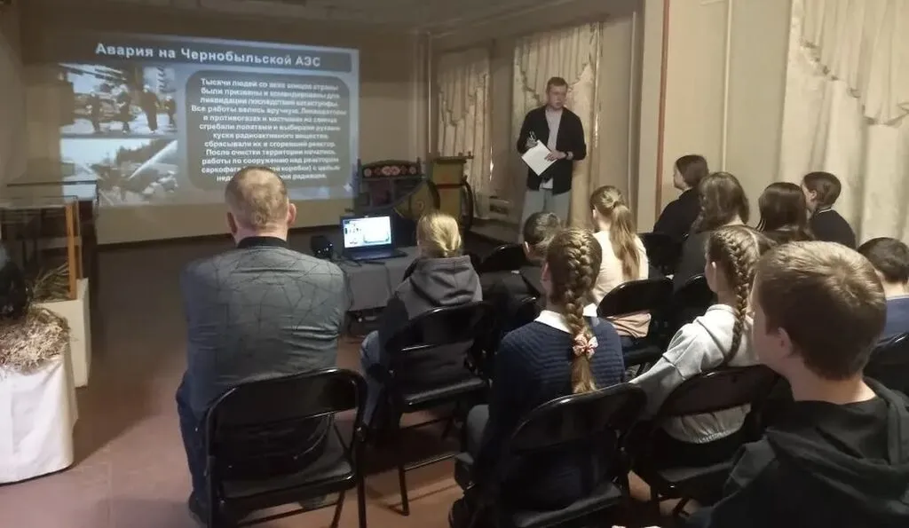 Директор музея Андрей Пушкарев представил школьникам презентацию. Материал позволил ребятам глубже осознать масштаб катастрофы, её причины и сложнейший процесс ликвидации последствий, который оказал долгосрочное влияние на экологию и здоровье миллионов людей. Особое внимание было уделено подвигу ликвидаторов – людей, которые ценой собственной жизни предотвратили еще более страшное развитие событий, а также судьбе города-призрака Припяти.